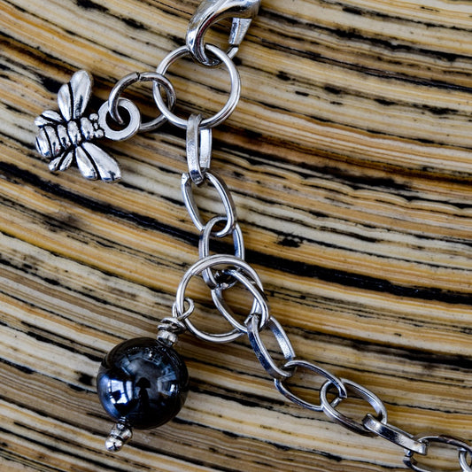 Expressions in Hematite, Silver Chain Bracelet with a Hematite Bead Charm