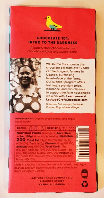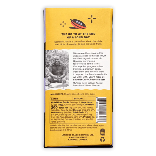 Latitude Craft Chocolate, Semuliki Dark 70% Bar