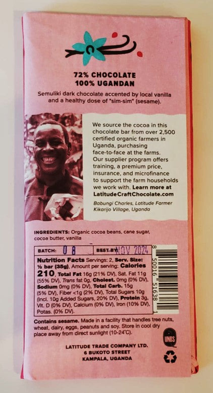 Latitude Craft Chocolate, VANILLA SESAME 72%
