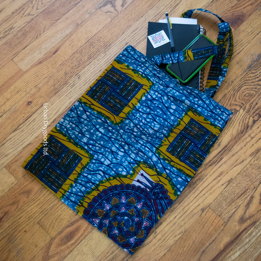 Handmade African Laptop Computer Sleeve with Teal, Yellow, and Brown
