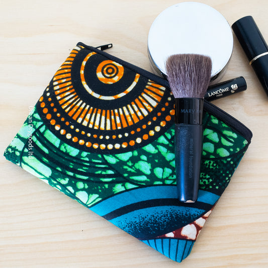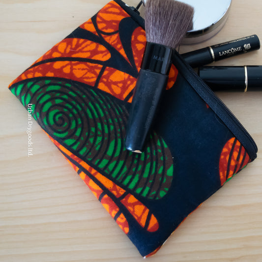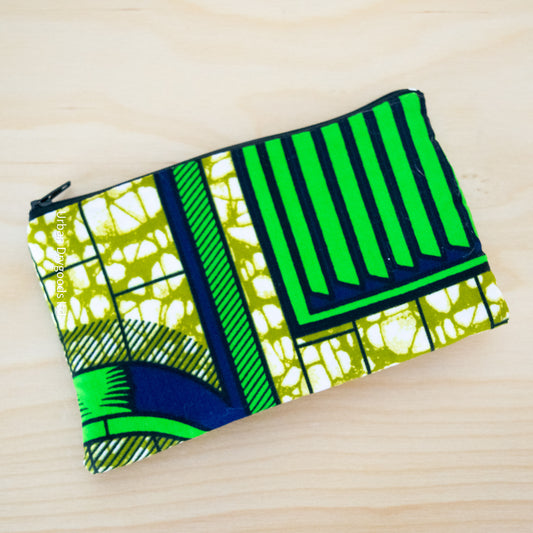 Handmade African Small Purse, with Green, and Orange Organic Design