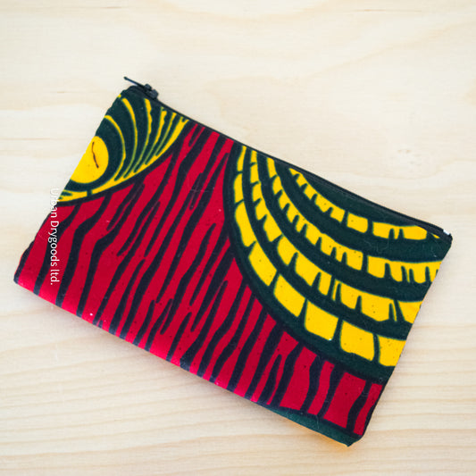 Handmade African Small Purse, with Red Background, and Blue Lotuses