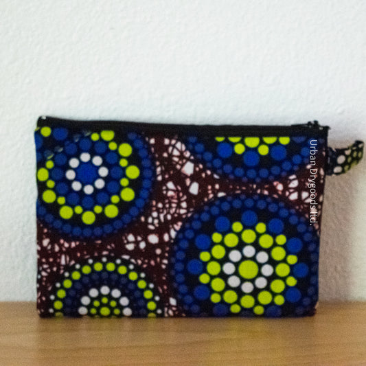 African, Handmade Padded Case for E-Readers, Jewelry, Etc. Brown Background, with Blue and Green Circles