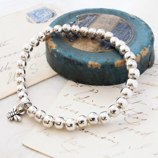 Stackables Stretch Bracelet with Large, Silver 5mm Beads and a Tibetan Silver Bumble Bee