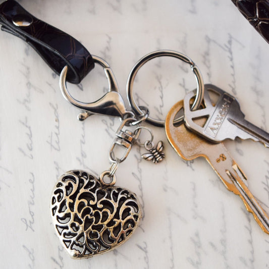 Zip-n-Keys Large Silver Filigree Heart Keychain, Handbag Charm