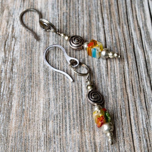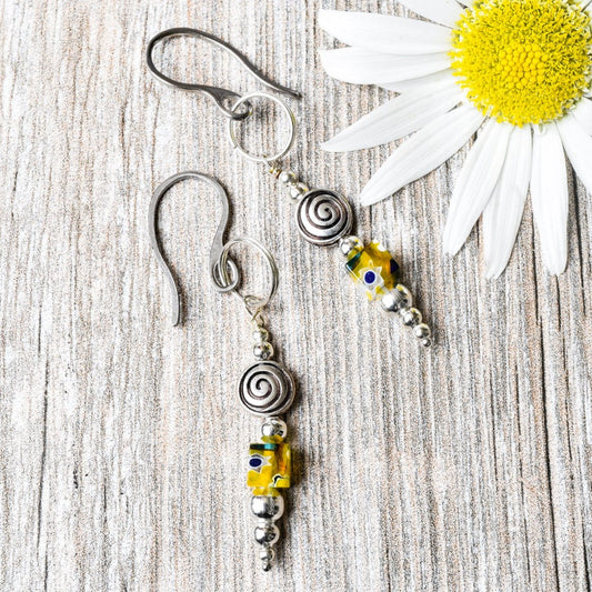 Zahra Colors, Silver Dangle Earrings with Yellow Orange Flower
