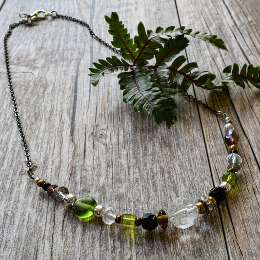 Zahra Colors, Gunmetal Chain Necklace with Mixed Colors of Autumn