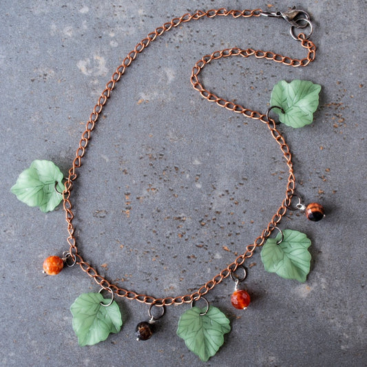 Expressions in Red Fire Agate, 18-inch Copper Leaf Necklace