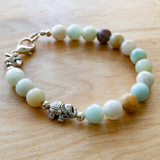 Beginnings, Natural Amazonite Bracelet with a Silver Elephant Accent
