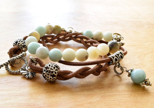 Beginnings, Natural Dark or Light Brown Bracelet with Amazonite Pendant