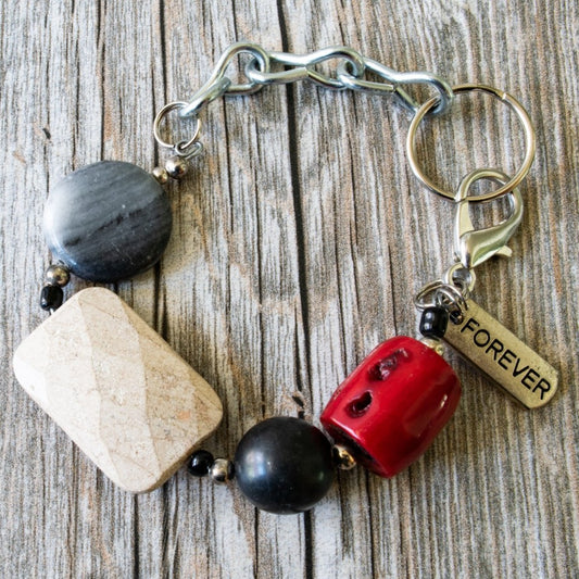 Artisan Series, Sadie - Bracelet with Red Coral, Cream Howlite, and Gray Stone