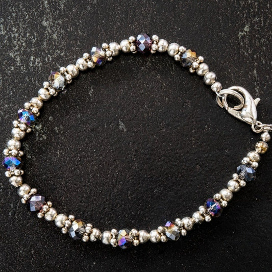 Expressions in Blue, Bracelet with Delicate Faceted Crystals, and Small Silver Beads