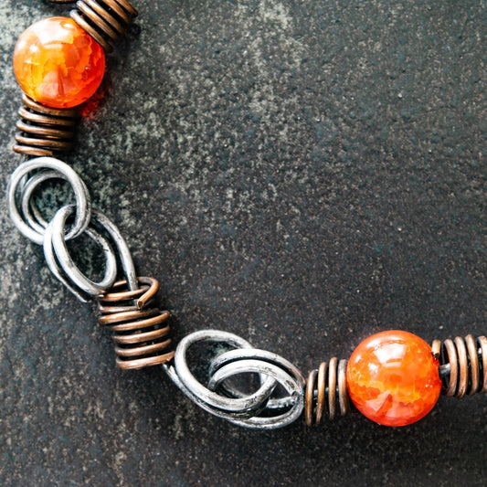 Marty's Twisted, Steel Chain Link Bracelet with Cinnamon Agates