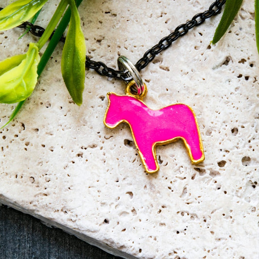 Little Pony, Gunmetal Chain Necklace with Pink Pony