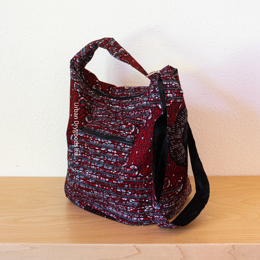Cross Body Sling Bag, Ethnic - BoHo - Hippie Bag with Black and Red Burst