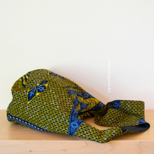 Cross Body Sling, Ethno, Hippie Bag, with Green and Navy Blue Flowers and Leaves