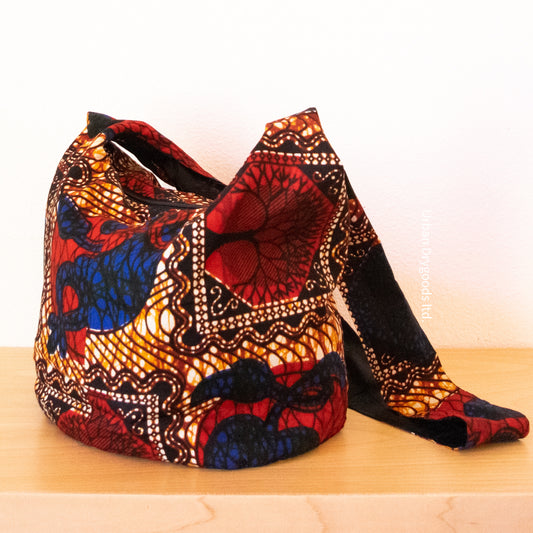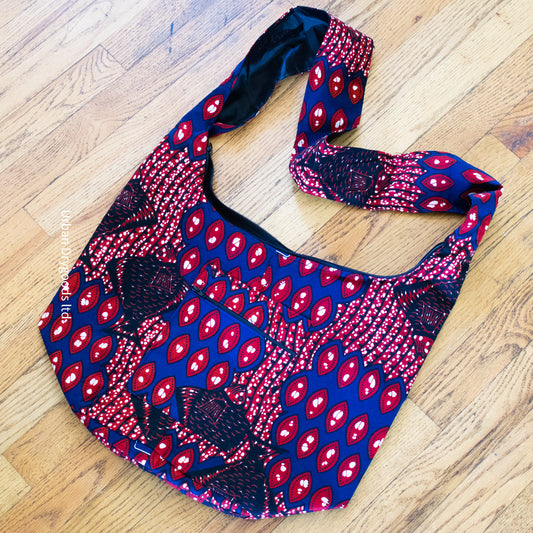 Cross Body Sling Bag, Ethnic - BoHo - Hippie Bag with Red, Gold, Black, and Blue Design