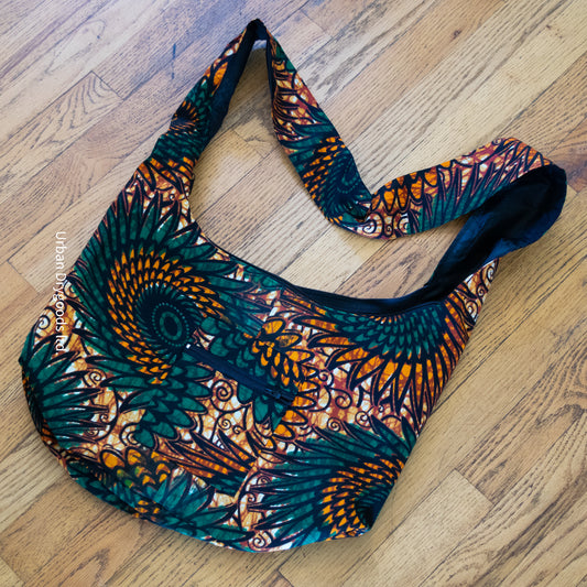 Cross Body Sling, Ethno - Hippie Bag, with Green and Yellow Sunflower Graphic