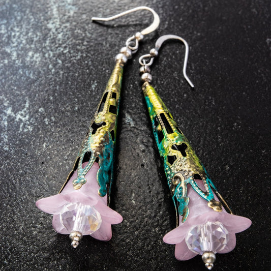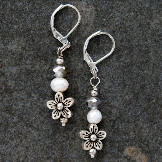 Blooms, Summer Nights Black and Gray Dangle Earrings