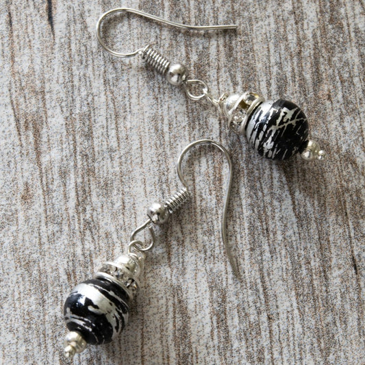 Little Treats, Fishhook Dangle Earrings with Black and Silver Swirls