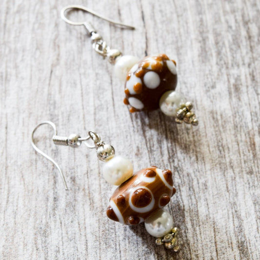 Fringe, Dangle Earrings with Brass, Silver and Glass Media