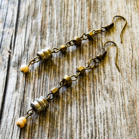 Artisan Series - Bundles, Autumn Mix Hook Earring with Stones, Steel, and Copper