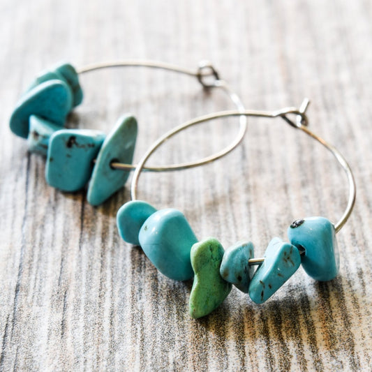 Expressions in Turquoise, Hoop Earrings with Stacked Stones