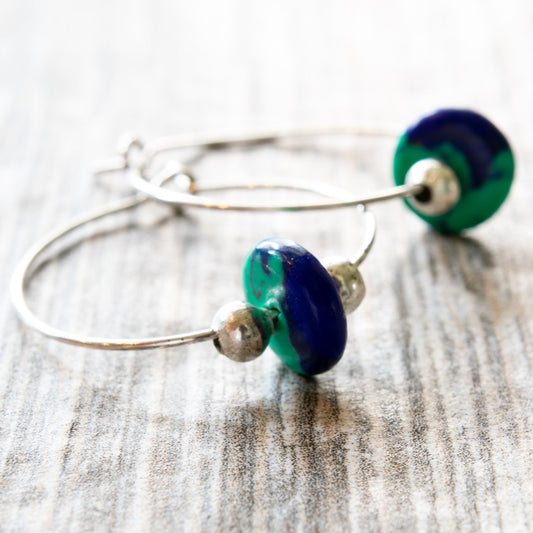 Little Treats, Silver Hoope Earrings with Azurite Stones