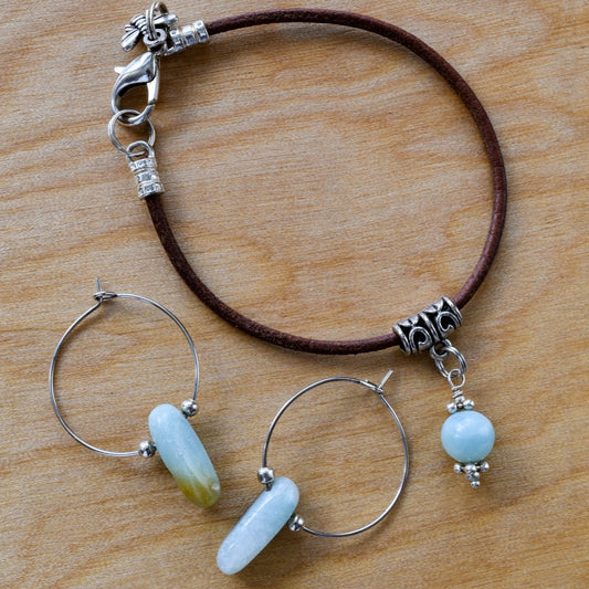 Products Beginnings, Natural Amazonite Nugget Silver Hoop Earrings