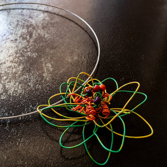 For that tech lover in your life…with a twist! This collection utilizes upcycled computer bits, steel wire, and mixed materials. Our designer's husband is a pipe organ builder, and many of the items in this collection are made from leftovers and castoffs from his work. There is a little bit of something for everyone with this collection. Definitely something different and distinctive…express yourself!