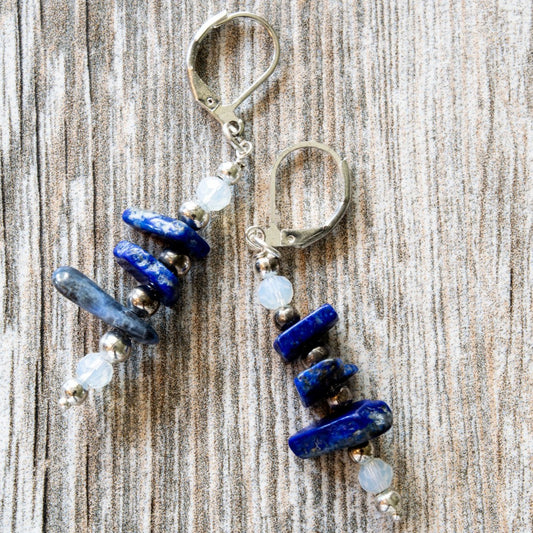 Expressions in Sodalite, Spring Back Dangle Earrings with Sodalite and Opalite