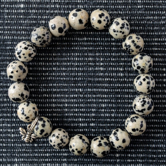 Expressions Dalmatian Black and White Stone Bead Bracelet
