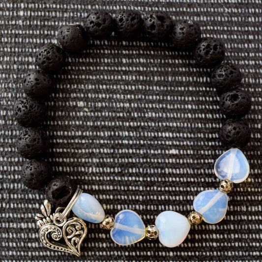 Expressions in Opalite, Stretch Bracelet with Opalite Hearts with Lava Stone Beads