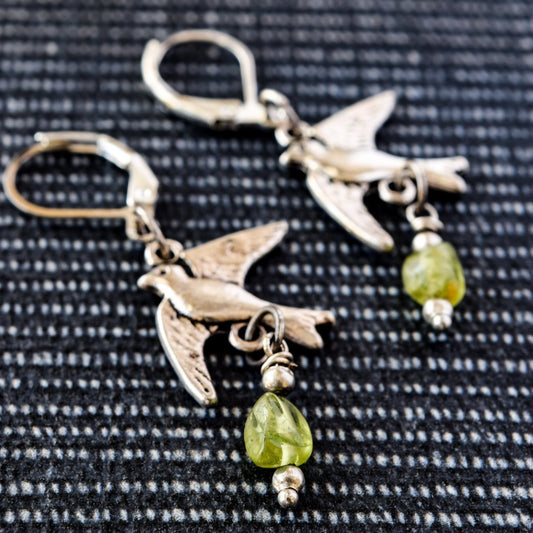 Expression’s Birds in Flight Dangle Earrings with Opalite and Peridot gemstones