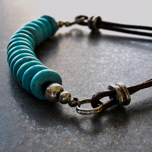 Expressions in Turquoise Natural Stacked Stone and Leather Necklace