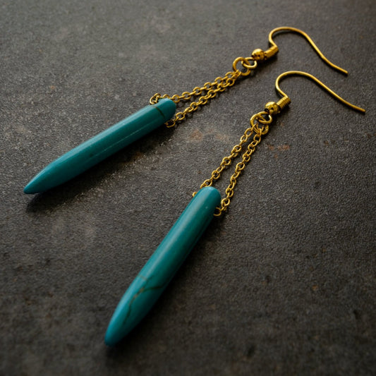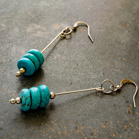 Expressions in Turquoise Natural Turquoise Stacked Stone and Silver Dangle Earrings