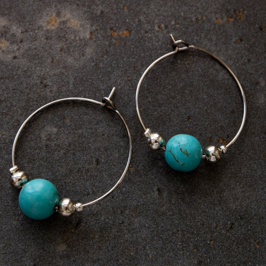 Expressions in Turquoise, Hoop Earrings with Stacked Stones