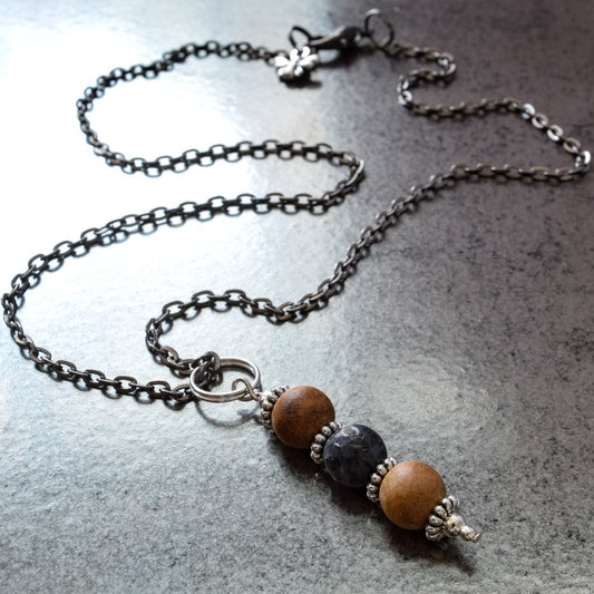 Expressions in Labradorite, 21-inch Sandalwood and Labradorite Pendent Necklace