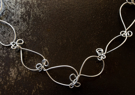 Rain Drops, Woven Steel Necklace with Clear, White, Silver, and Gray Beads