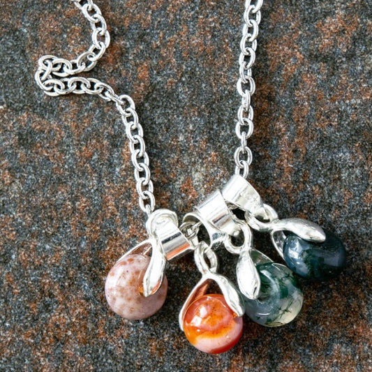 Simplicity Stainless Steel Necklace with Small Mixed Stone Pendants