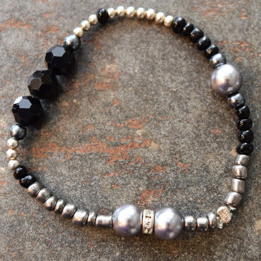 Stackables Bracelet with Antiqued Silver Beads with a Prussian Blue Pearl Charm